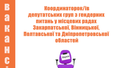 Анонси Вакансії координаторок/ів секретаріатів депутатських груп з гендерних питань (ДГГП): дедлайн 22 липня