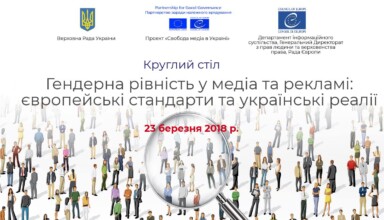 Анонси 23 березня – круглий стіл «Гендерна рівність у медіа та рекламі: європейські стандарти та українські реалії»