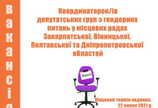 Анонси Вакансії координаторок/ів секретаріатів депутатських груп з гендерних питань (ДГГП): дедлайн 22 липня